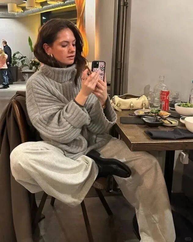 覺得毛衣單穿單調,不妨搭一條質感披肩:羊絨的柔軟披肩搭在肩頭,讓基礎款高領毛衣多了幾分復古腔調。