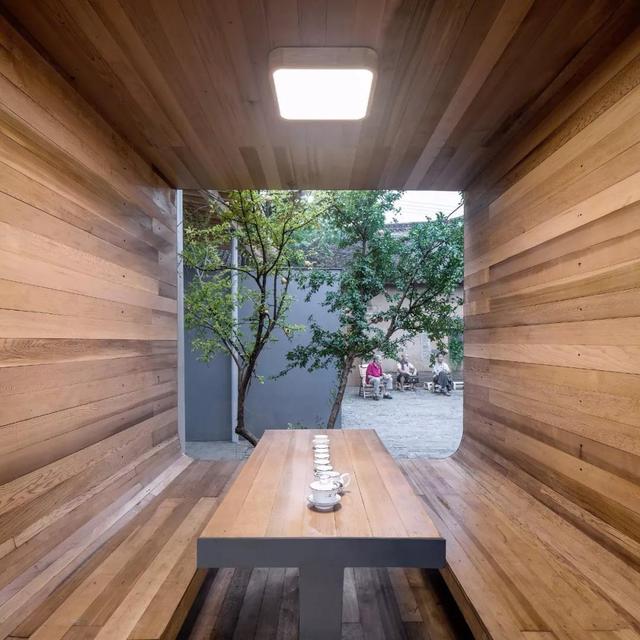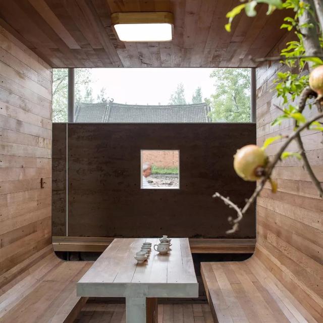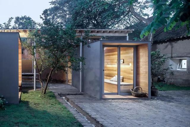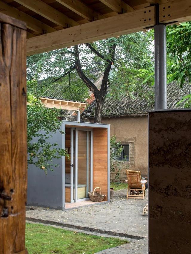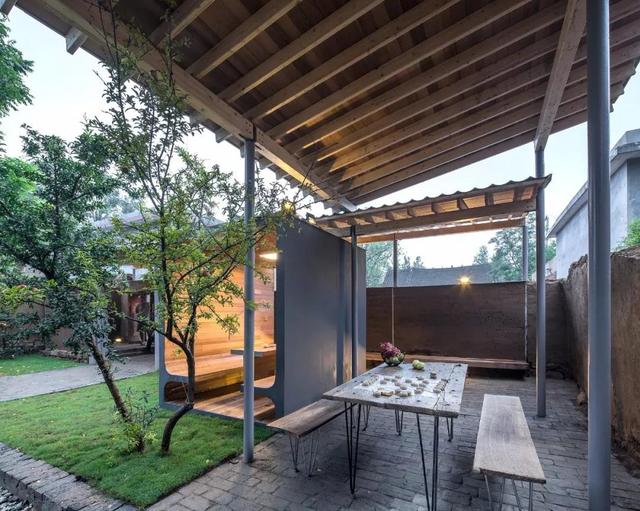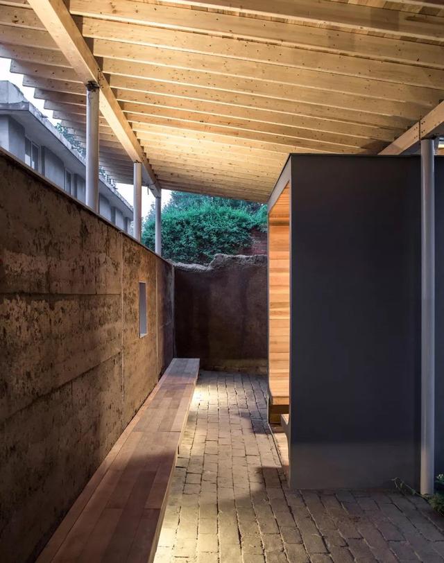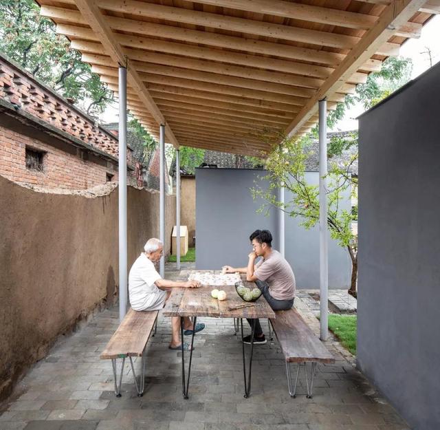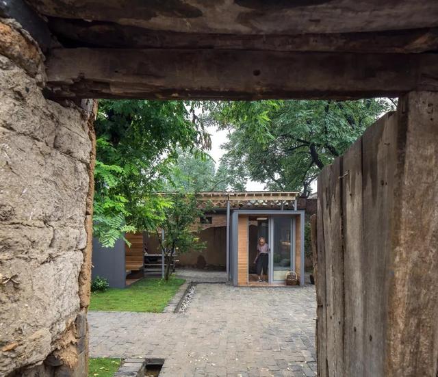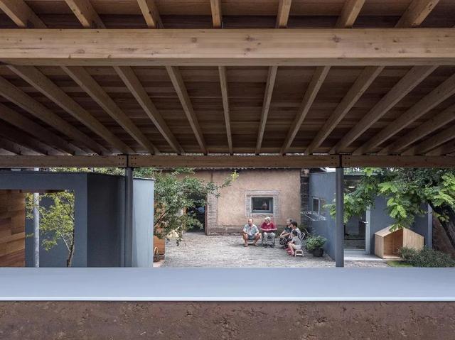 而原本的夯土牆小院,被設計師重新改造,利用木質結構,打造了一個優美詩意的木質連廊。裡面擺放了長凳,種上了草木,這樣的小小庭院,舒適又溫馨,驚艷了眾人。
