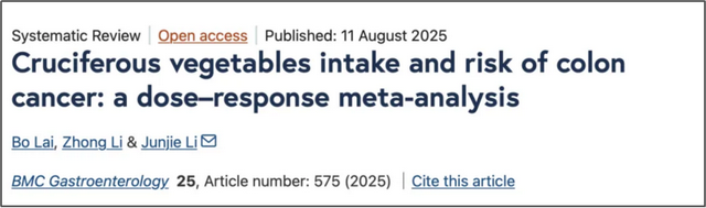 多吃十字花科蔬菜,真的有助於預防結腸癌。 2025年8月,《BMC腸胃病學》刊發的一項針對超60萬人的研究發現,與攝取量最低的人群相比,攝取量最高的人群結腸癌發病風險降低17%。