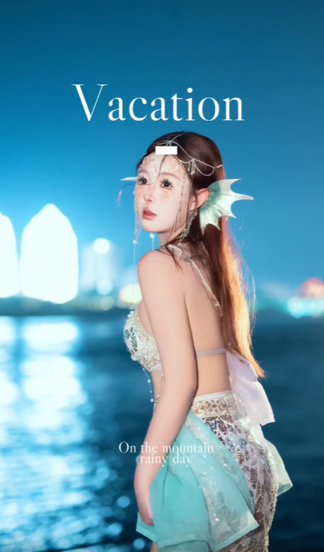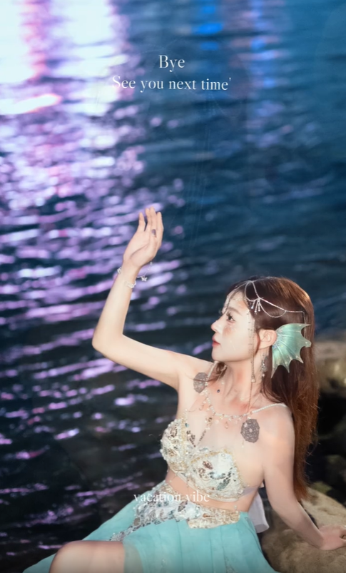 只見她在攝影師的鏡頭中,看起來就像是剛從海裡浮上水面的人魚公主,空靈優雅的氣質讓人挪不開雙眼~化妝師拍上的紅色斑點原來是要做成類似傷口的效果,看起來真的太像電影角色了吧!
