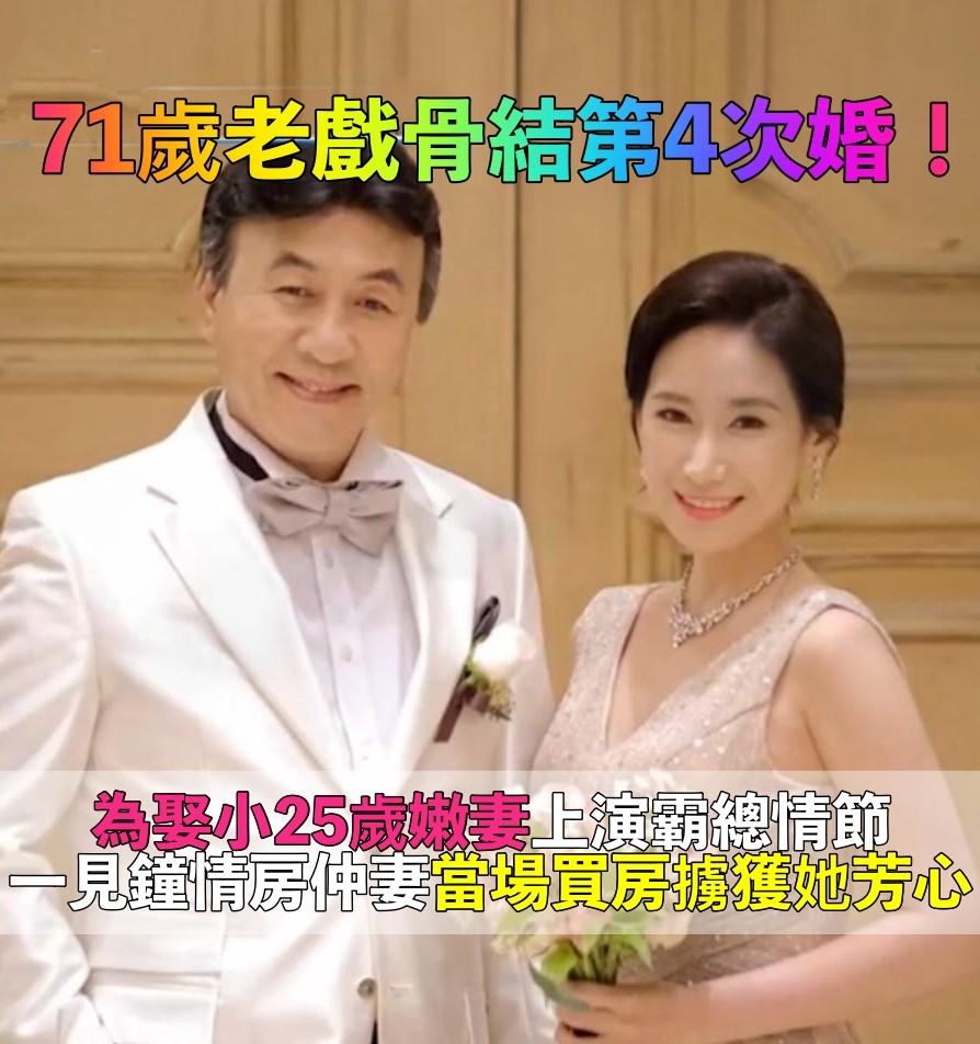 勇敢追愛!71歲老戲骨「40年結第4次婚」 再婚小25歲房仲妻「初次見面就送房子」偶像劇真實上演