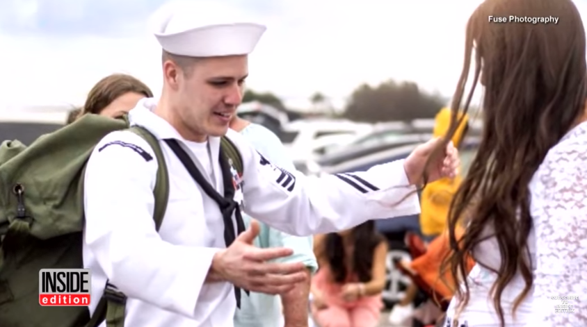 海軍老公「為國出征半年」終於回家!老婆迎接一拿開牌子「露出大肚子」他臉當場垮掉