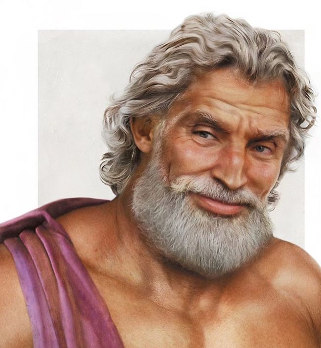 宙斯在動畫感覺就是位親切慈祥的老伯伯,除了有著QQ頭髮、身材也是魁武到驚人!而變成人類後頭髮變得比較短,五官雖然有留著鬍子但感覺很有熟男的魅力,畢竟是最強的神嘛!顏值當然也不同凡響囉~~~