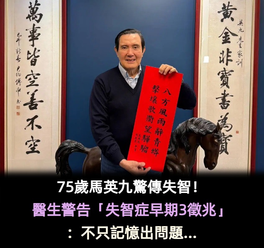 75歲馬英九驚傳失智!醫生警告「失智症3徵兆」:不只會忘記事情 Alice 2026-03-30 檢舉 除了記憶問題,還有「輕微認知功能障礙」和「輕微行為障礙」需注意,這類症狀以情緒波動、社交應對改變為主。胡朝榮醫師舉例,患者可能從原本有禮貌變得較為無理,或是熟悉的路線突然會迷路,這些都是警訊。若是額顳葉失智症類型,情緒轉變會更加明顯。阿茲海默症影響到長期記憶,通常是病程5至6年後的退化階段,此時自我照顧能力也會下降。他提醒民眾,若發現家人有類似狀況,應儘速就醫進行專業評估。(圖片來源:臉書)來源:ettoday Advertisements 回首頁 2/2 Advertisements 編輯精選推薦 More + 檢出新病毒!台灣首現「新冠BA.3.2變異株」 疾管署緊急發聲 帶孩子散步到一半!知名女星「腸子直接掉下來」 忍痛「用手塞回去」現況曝光 喝的瘦瘦針!她曝「超商1飲品」喝3口整天不餓 專家揭真相:「是真的」 清明前吃最鮮嫩!它是「天然造血庫」一周吃1次 促進循環「臉色紅潤有光澤」女人要多吃 增強免疫力!退休醫生坦言:壽命長不是多走路和多睡覺 而是堅持2件小事「晚年健康長壽」 以為只是小感冒!本土女星悲痛證實「他併發肺炎過世」 一度淚灑現場「後悔同意插管」 昔為父還9000萬債!方季惟罹癌重生「歡慶59歲生日」 不婚不生「發現2顆腫瘤」笑喊:看淡一切 腸道長息肉!上廁所時會「有4個提醒」 做好4件事「別等到中晚期了」才後悔 連主席也勸不動?國民黨大咖宣布「強硬不退選」恐鬧雙包 柯文哲被判17年!投票「7.3萬人表態」結果超震撼 快訊/柯文哲一審17年!京華城案僅「這2人獲判無罪」 肝癌末期多次被判死!台中翁「靠2招癌細胞清零」 女性衰老特徵「1臭、2大、3小」!如果都沒有「恭喜妳還很年輕」 罹大腸癌淡出影壇!88歲老戲骨生日「被發現入住養老院」 白髮削瘦「只能推輪椅代步」健康狀況曝光 驚現「死亡凶兆」!命理師預言:柯文哲「這年前難脫身」重生時間曝光 44歲許維恩罹乳癌!醫示警「3日常用品」易致癌:別碰才能保命 民眾黨喊「凱道破8萬人」!他曝光「真實數字」網全笑了 快訊/流感疫苗出事!同批「已打54萬劑」14縣市緊急回收 86歲蕭萬長「逆轉肺癌」!秘訣竟是「靠1碗養生湯」每周喝4次:快速清毒素 節目直播中出事!64歲郭正亮「突眼歪嘴斜」緊急送醫 最新病況曝光 相信柯文哲是清白的嗎?民調結果「一面倒」令人震驚 最新/台灣一疫情突升溫!超多人中標「突腳痛不想走路」 醫警告「一症狀易搞混」儘速就醫 「鄭習會」4月7號登場!他揭「中共3大要求」:斷了國民黨的路 如果身體有2處「發癢」 那可能在暗示您:血糖已經超標了 民進黨1縣市爆變數?沈富雄斷言「一定換人」:沒換請客吃到飽