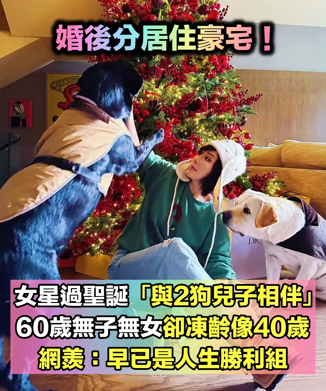 獨居豪宅過聖誕!大咖女星PO照「與2狗兒子相伴」 60歲無子無女「狀態宛若40歲」網羨慕:活出幸福感