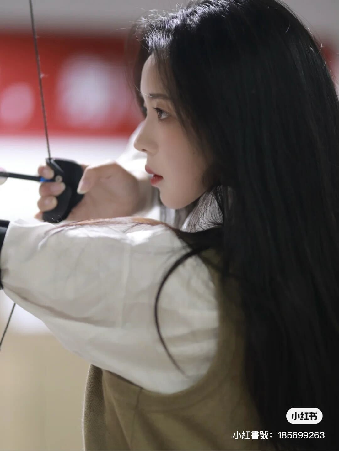 日前在社群平台小紅書上,有一系列黑髮女子射箭照討論度非常高,這位射箭女子不僅有著白皙的皮膚,側臉一看五官也超有魅力,拿著箭專注在場上的側拍照,讓人感覺戀愛感滿滿~