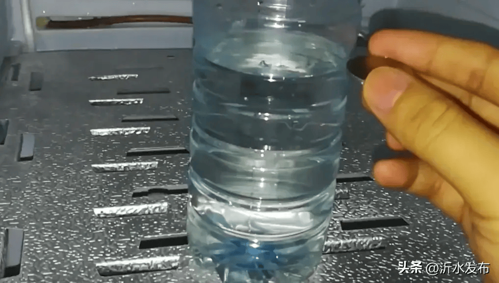首先,我們要把冷藏室的冰箱蓋關上。等到時間到了之後,我們可以打開冰箱的冷凍室,找到之前放入的水瓶。驚訝地發現,水已完全變成冰塊了。與我們所準備的飲料瓶相似,如果家中有一次性紙杯等類似容器也可以使用。但這樣做到底有什麼好處呢?