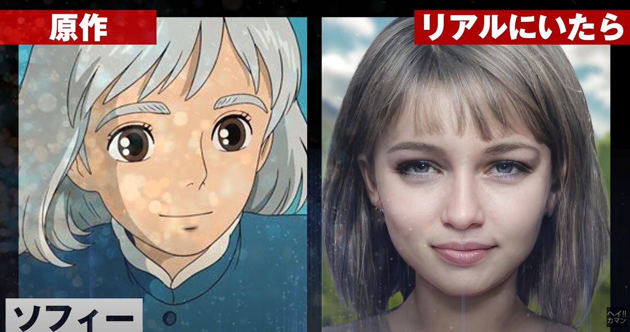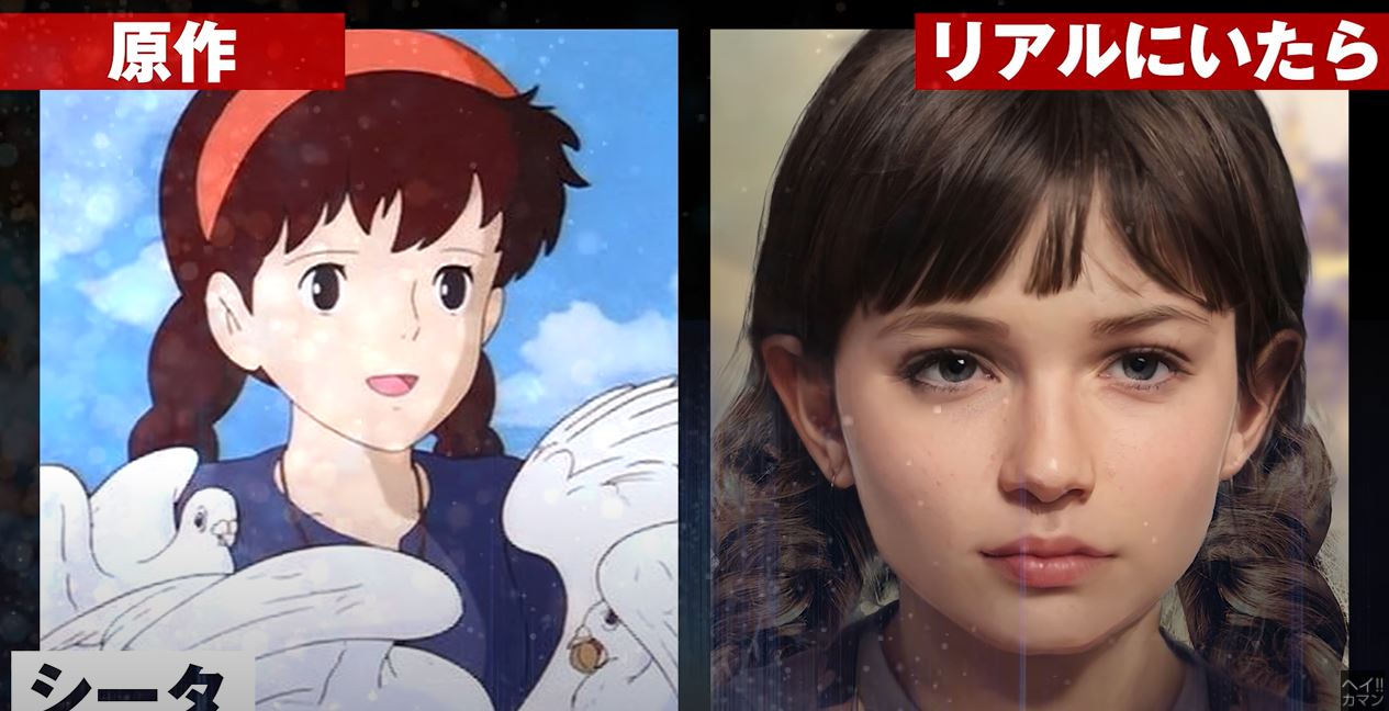 但說到把宮崎駿角色真人化,另外也有一位AI YouTuber「もしリア」同樣有相關的作品,例如《天空之城》裡的女主角希達,根本是混血美女啊!