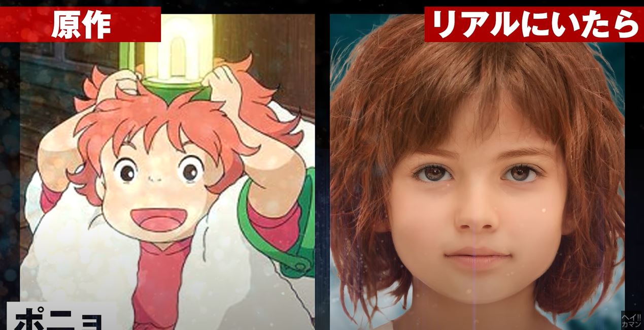《崖上的波妞》真實面貌同樣神復刻,紅髮、嫩臉,這時發現AI真人化實在把人物的可愛元素發揮到極致。