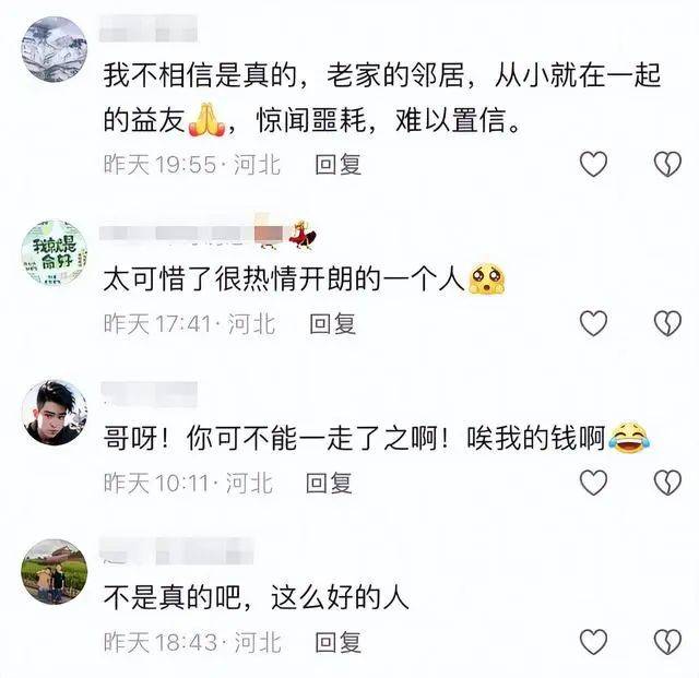 還有網友表示,自己曾有幸在「煎餅哥」的演唱會上見到他,他的歌聲和笑容至今仍深深地留在自己的記憶中。「煎餅哥」的離世,不僅是一個家庭悲劇,更是整個社會的損失。他用自己的才華和努力,贏得無數人的喜愛和尊敬,他的意外離世讓人感到無比惋惜。