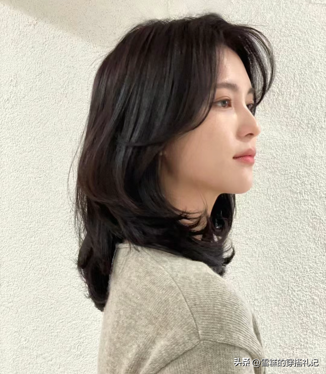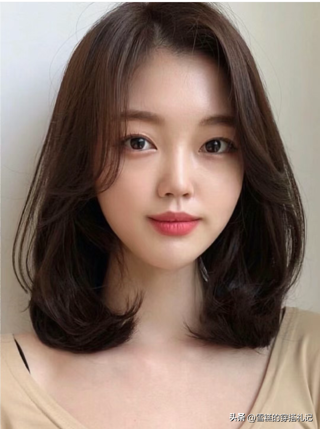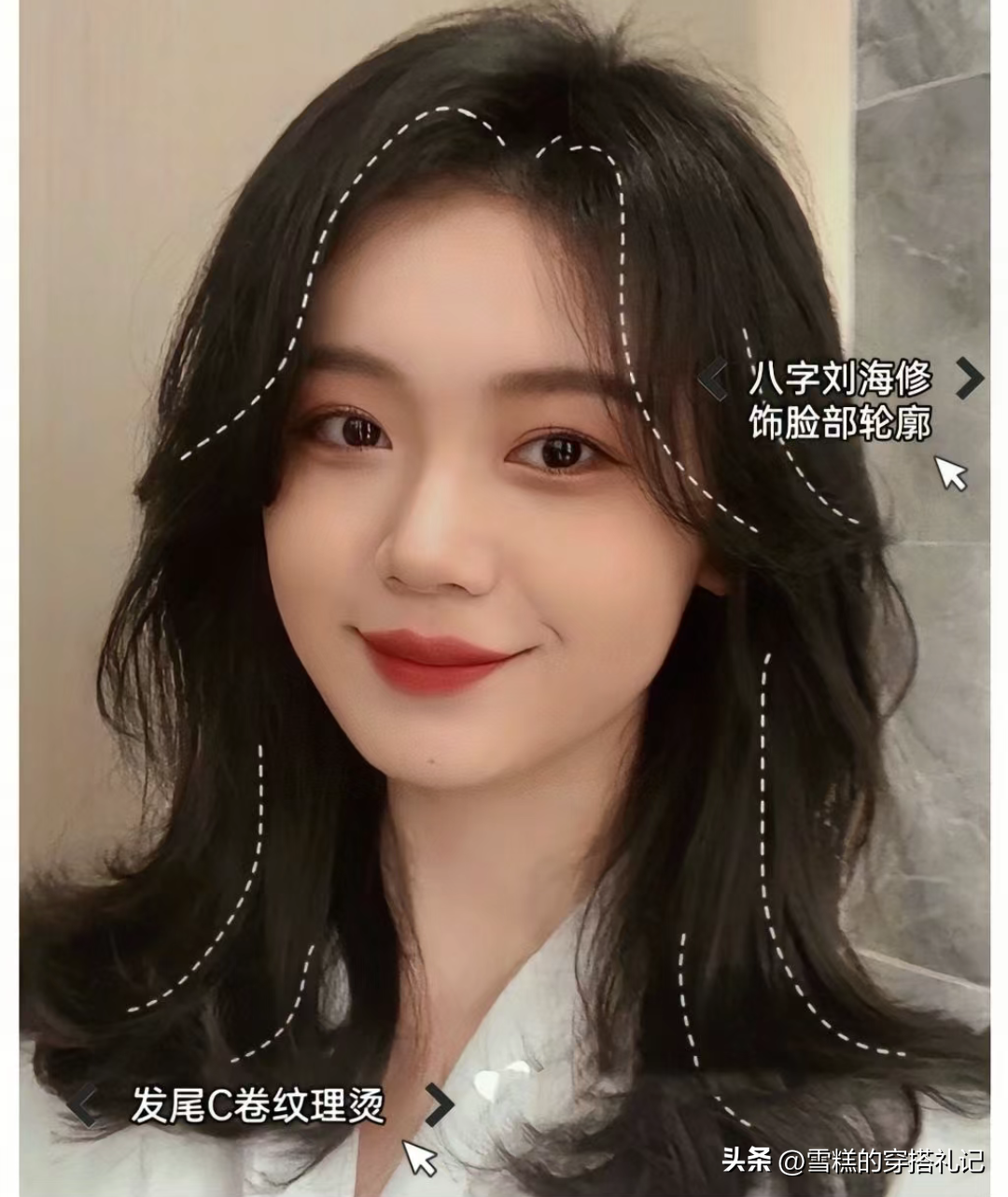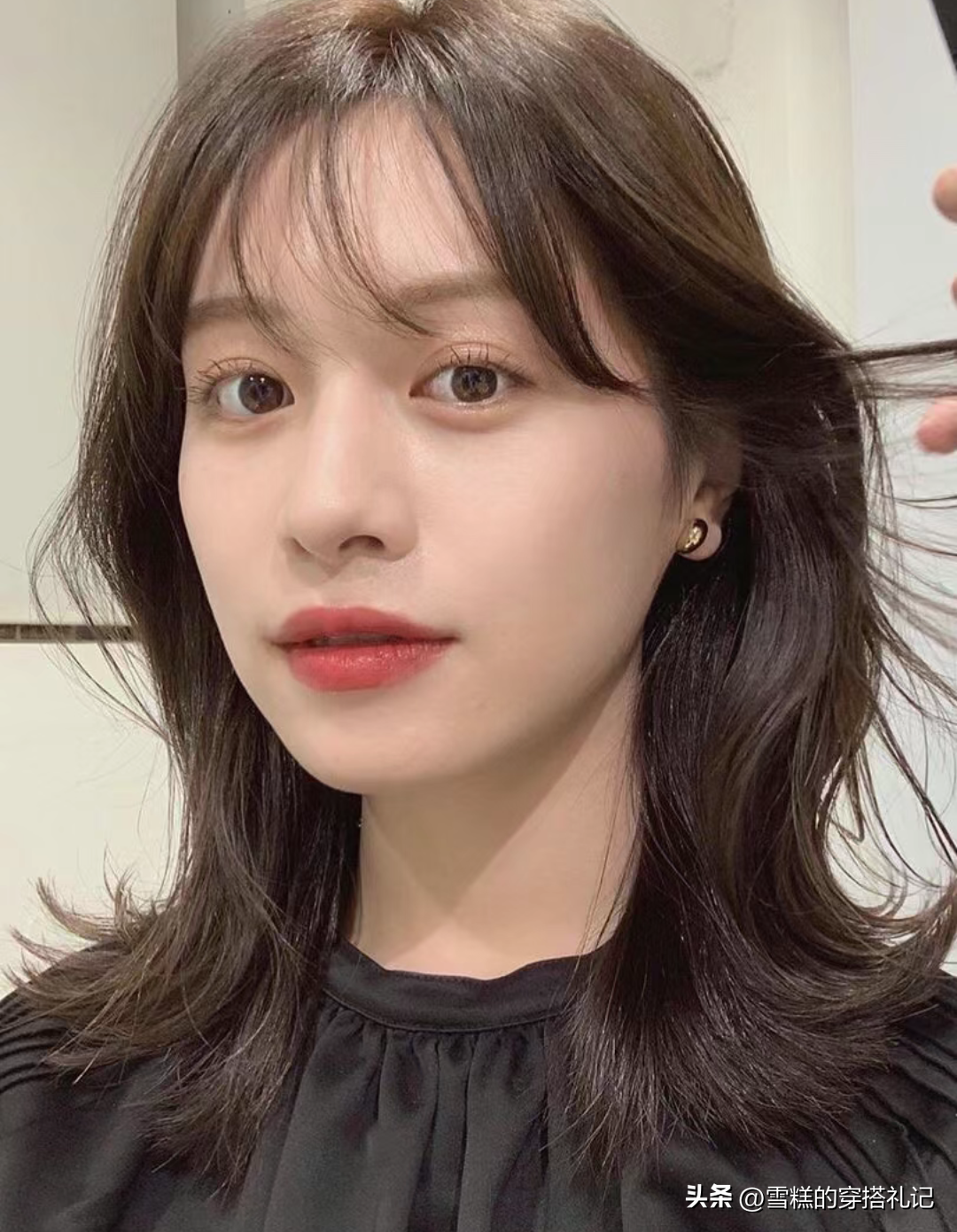 如果是順直的鎖骨髮,那麼本身線條就已經足夠流暢,不需要再過分的凹出線條,否則會給人一種過分呆板、刻意的感覺,可以搭配上一款輕薄的劉海兒,微微的增加一些弧度,使得整體髮型更加有透氣性,看著更加的清新減齡。
